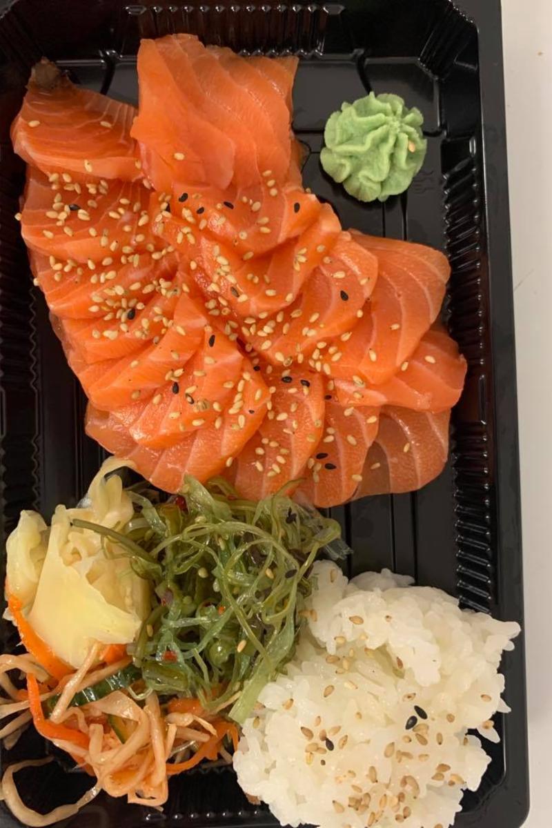 sesamfrø, ris, purre og vår hjemmelagde ponzusaus